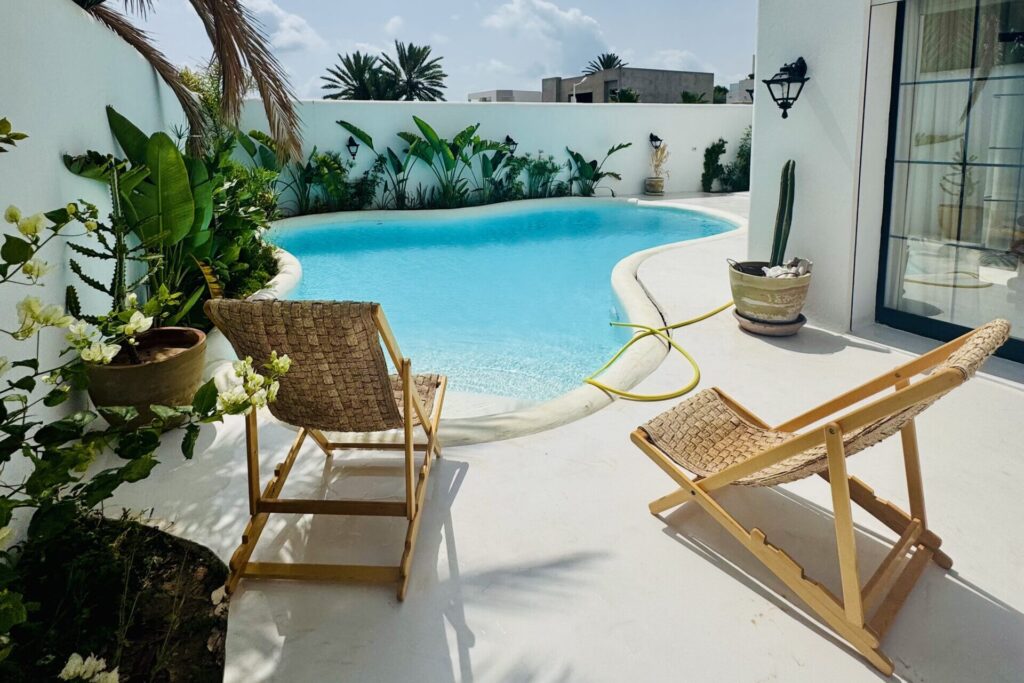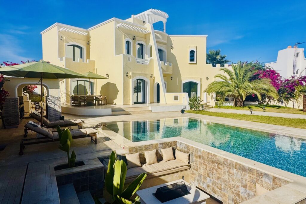 Aujourd’hui j’ai choisi de poser mes valises à Djerba pour allier passion et engagement : créer des villas où l’authenticité, les traditions et les valeurs familiales sont au cœur de l’accueil, et accompagner ma communauté à investir en toute confiance sur l’île.