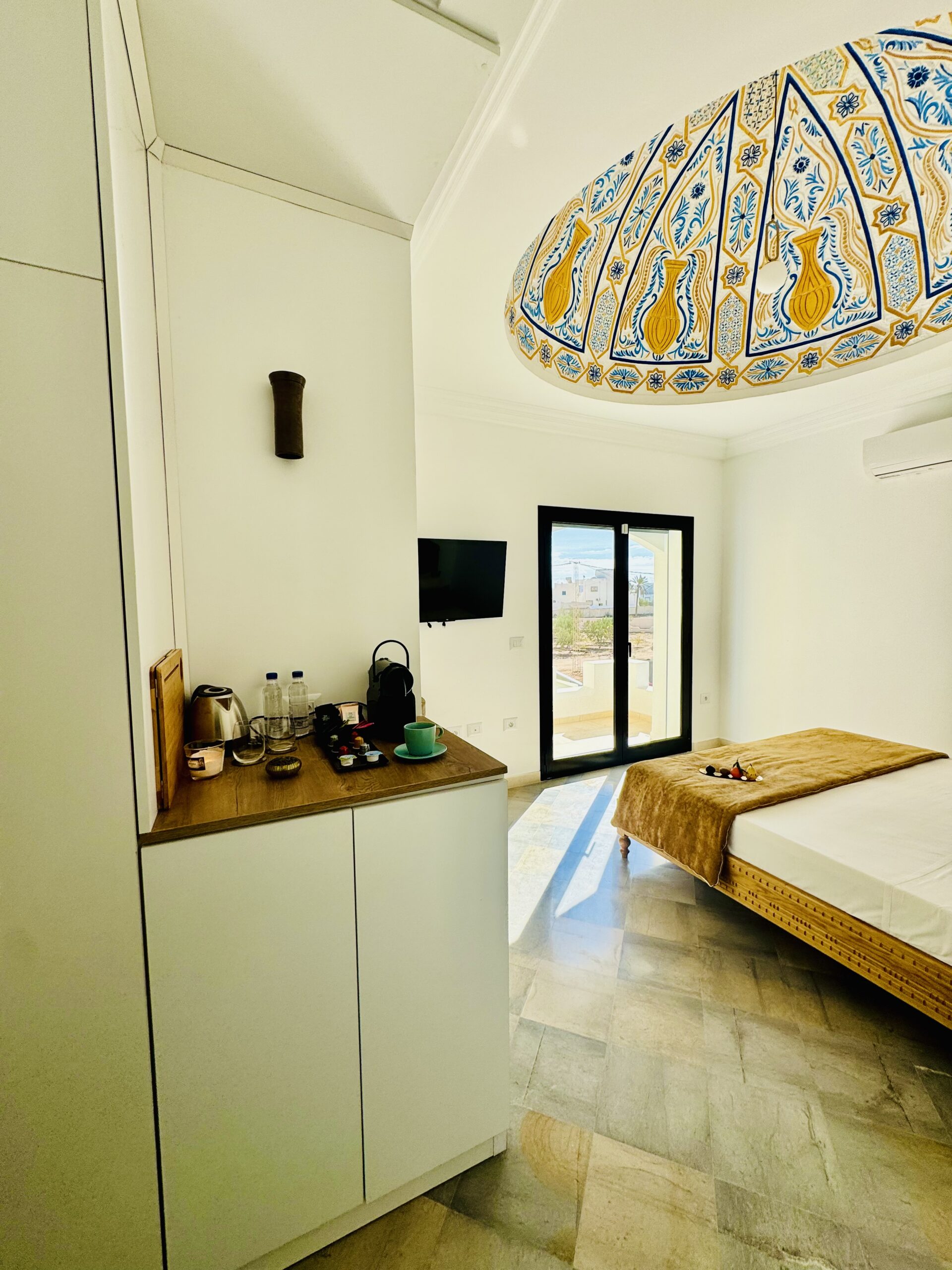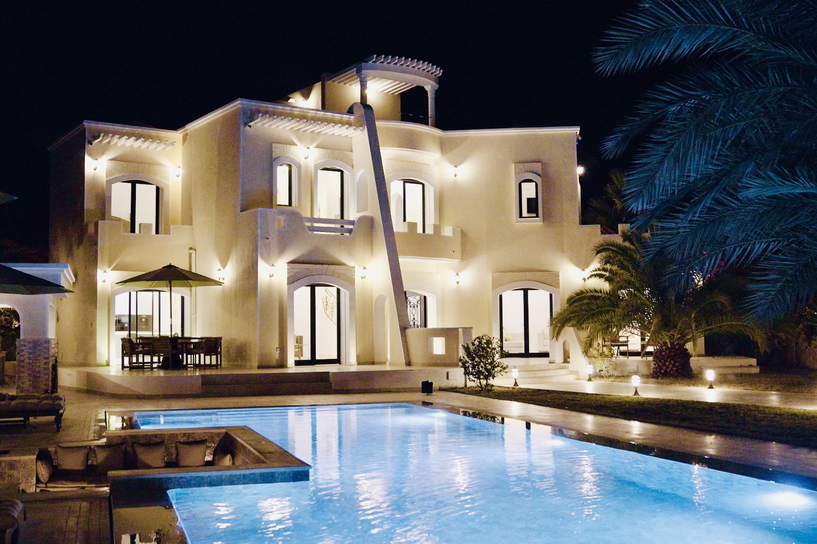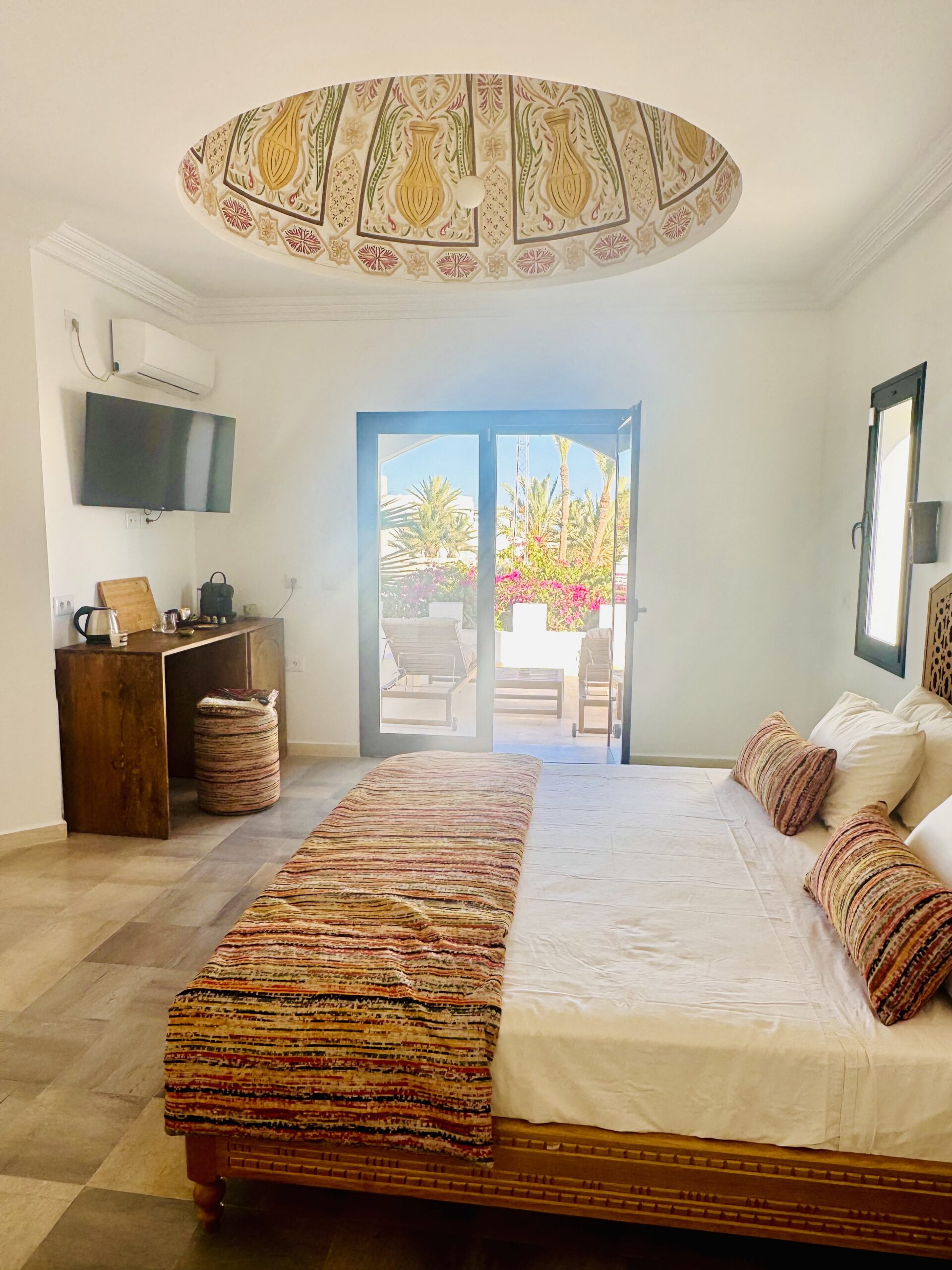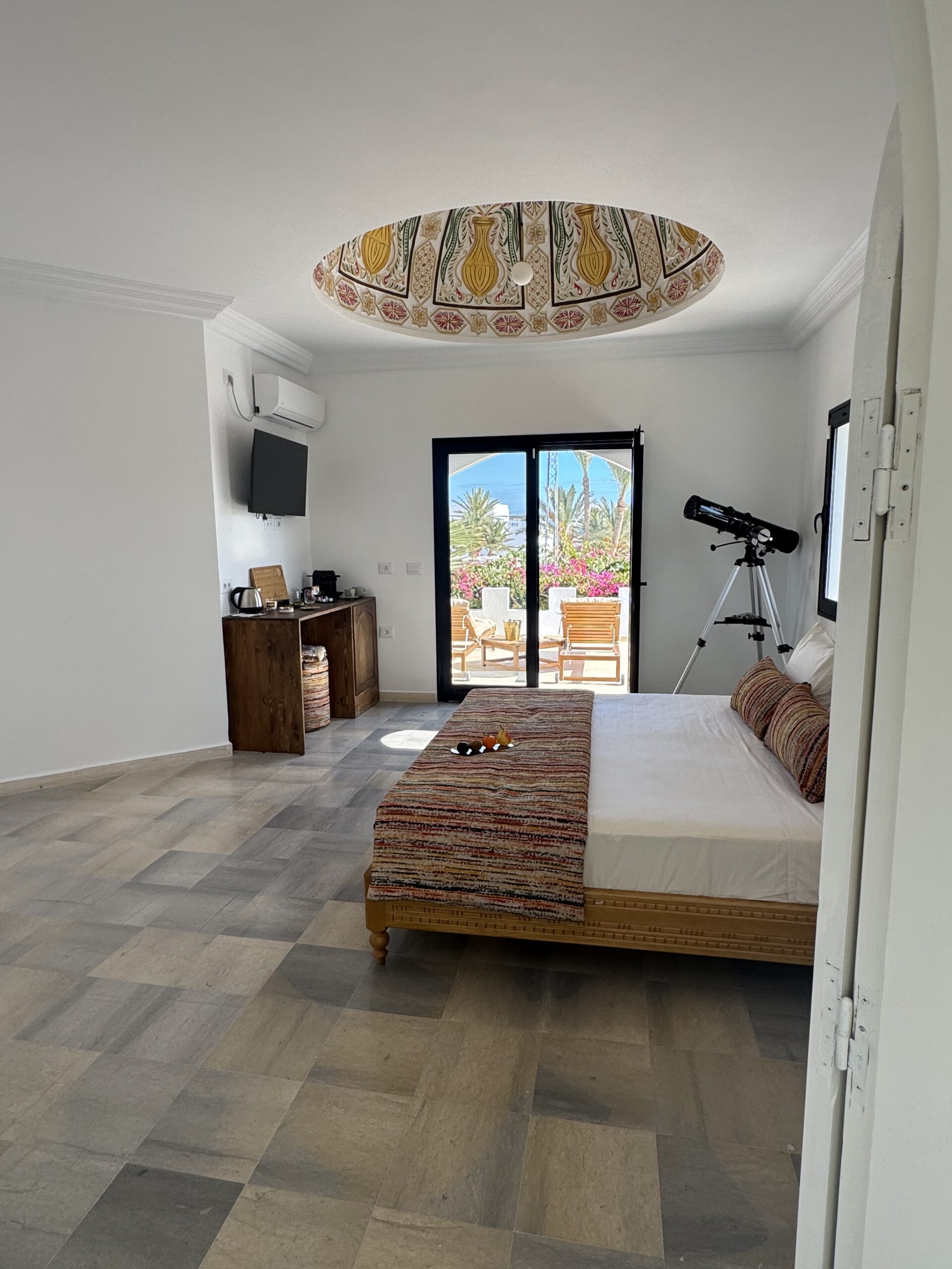 À l’extérieur, terrasses aménagées, cuisine extérieure , barbecue , crêpière , et transats premium vous attendent pour savourer le soleil djerbien. Le service 5 étoiles est à la hauteur de ce cadre d’exception : mini-bar premium, room service 24h/7j, et une multitude d’attentions personnalisées.