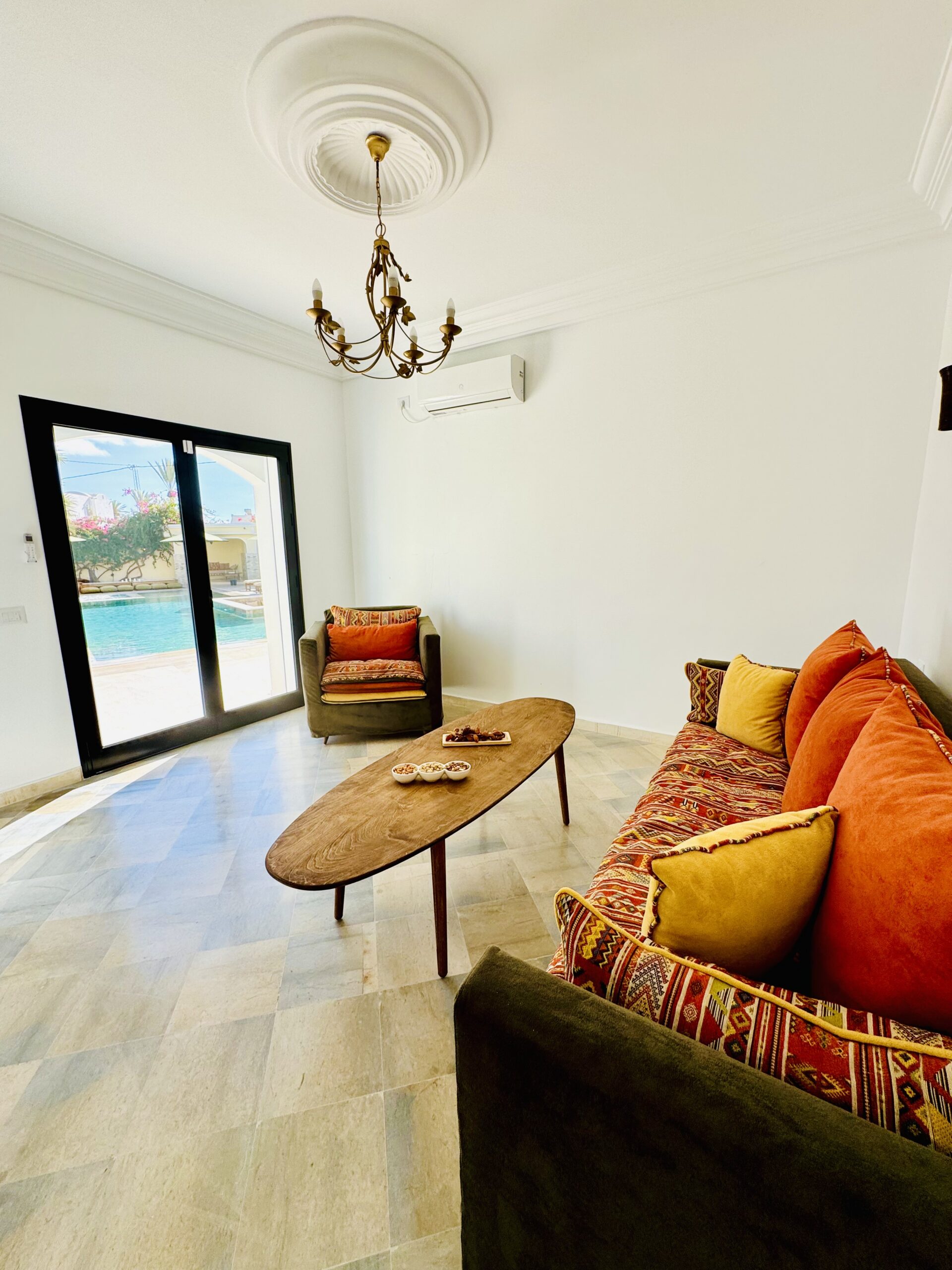 A 5 min en voiture de la mer turquoise de Djerba, cette villa d’exception allie l’authenticité architecturale tunisienne au raffinement contemporain. Sa piscine à débordement, baignée de soleil, vous invite à la détente absolue sous les palmiers majestueux .