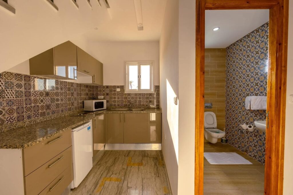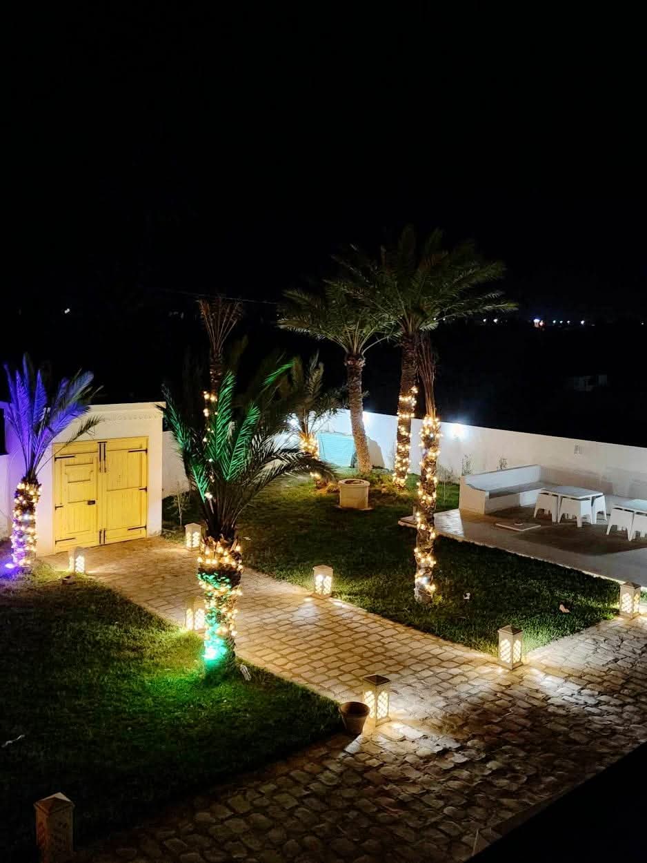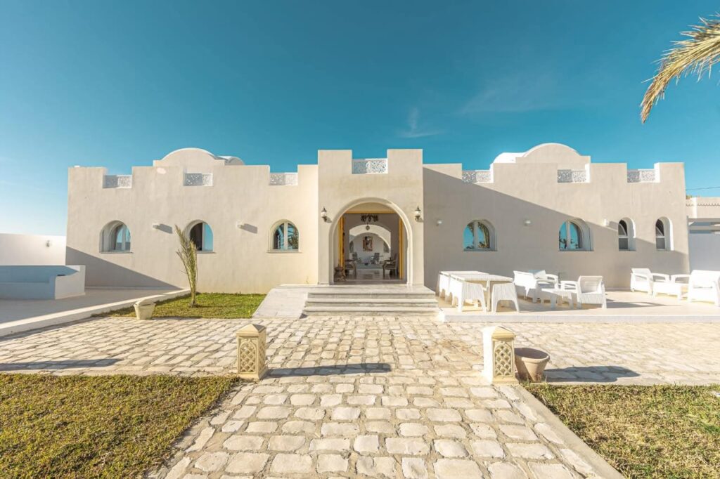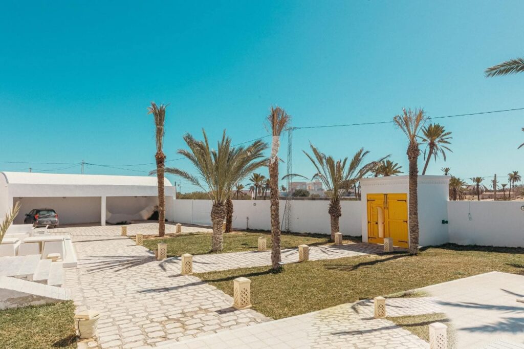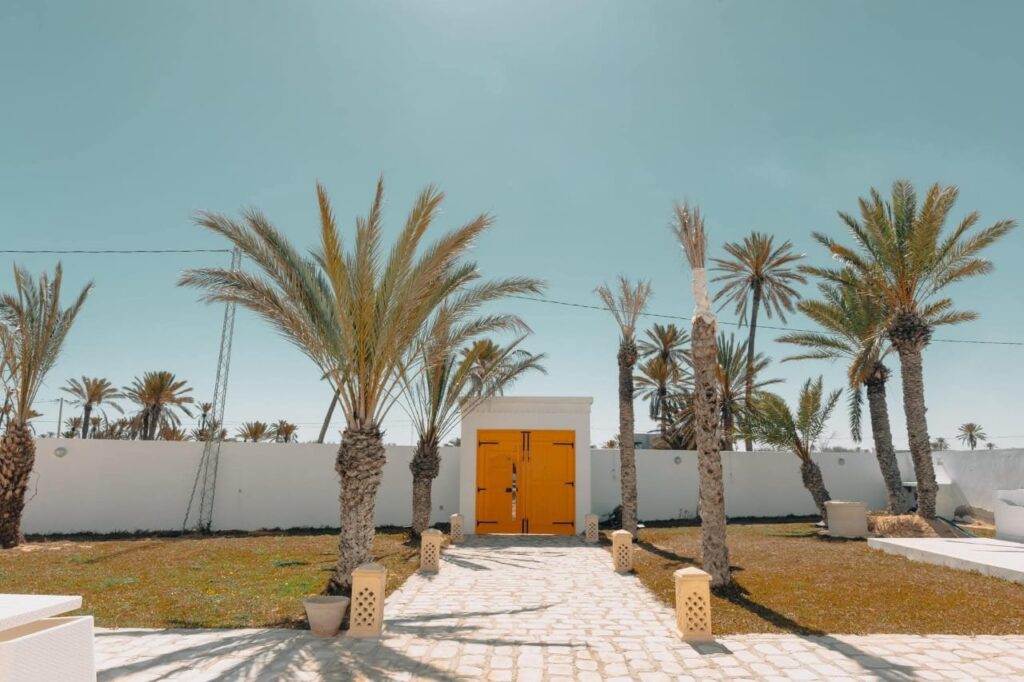 Musk de Djerba allie le charme authentique de Djerba à des prestations modernes. L’établissement comprend 5 suites duplex (chaque suite dispose de 2 lits doubles — capacité 4 personnes par suite, soit 20 personnes au total), toutes climatisées et équipées de salles de bains privées. Chaque suite est aménagée sur deux niveaux offrant intimité et confort. Le cœur de la maison est un patio central avec piscine entourée d’arcades blanches, complété par un rooftop idéal pour les couchers de soleil et les moments conviviaux.