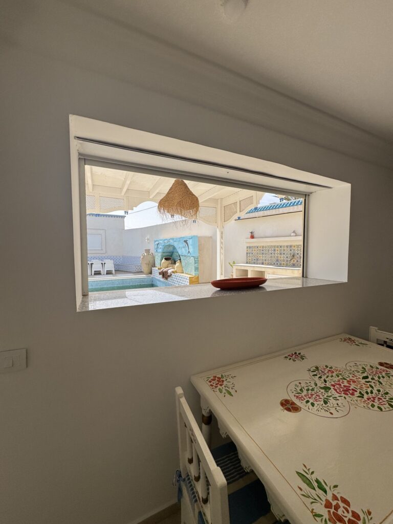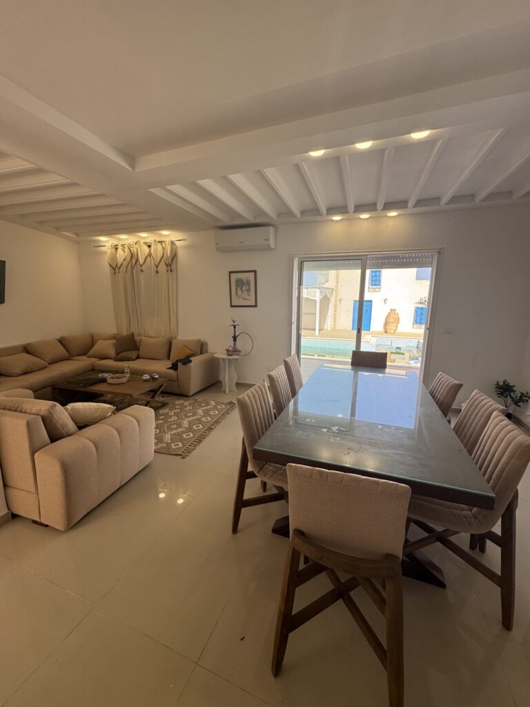 La villa se distingue par sa décoration typiquement tunisienne, alliant charme et authenticité. La cuisine extérieure est parfaite pour des barbecues en plein air, vous permettant de savourer des repas tout en profitant du soleil.