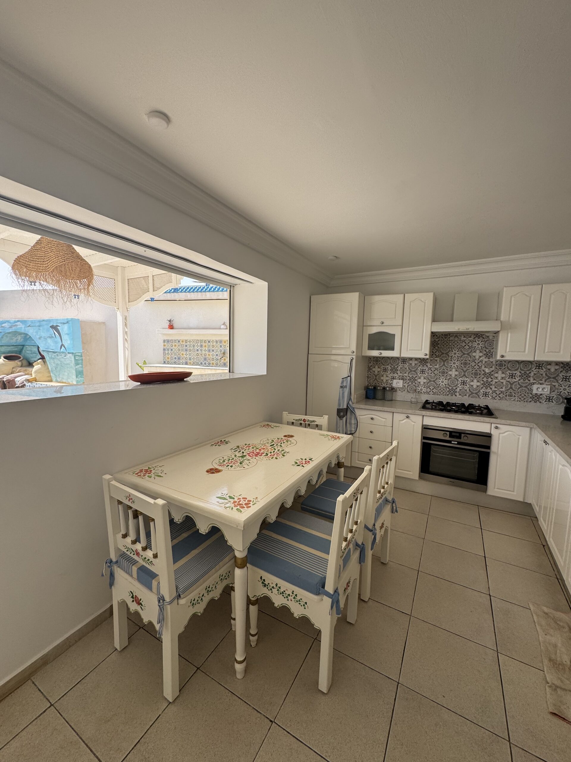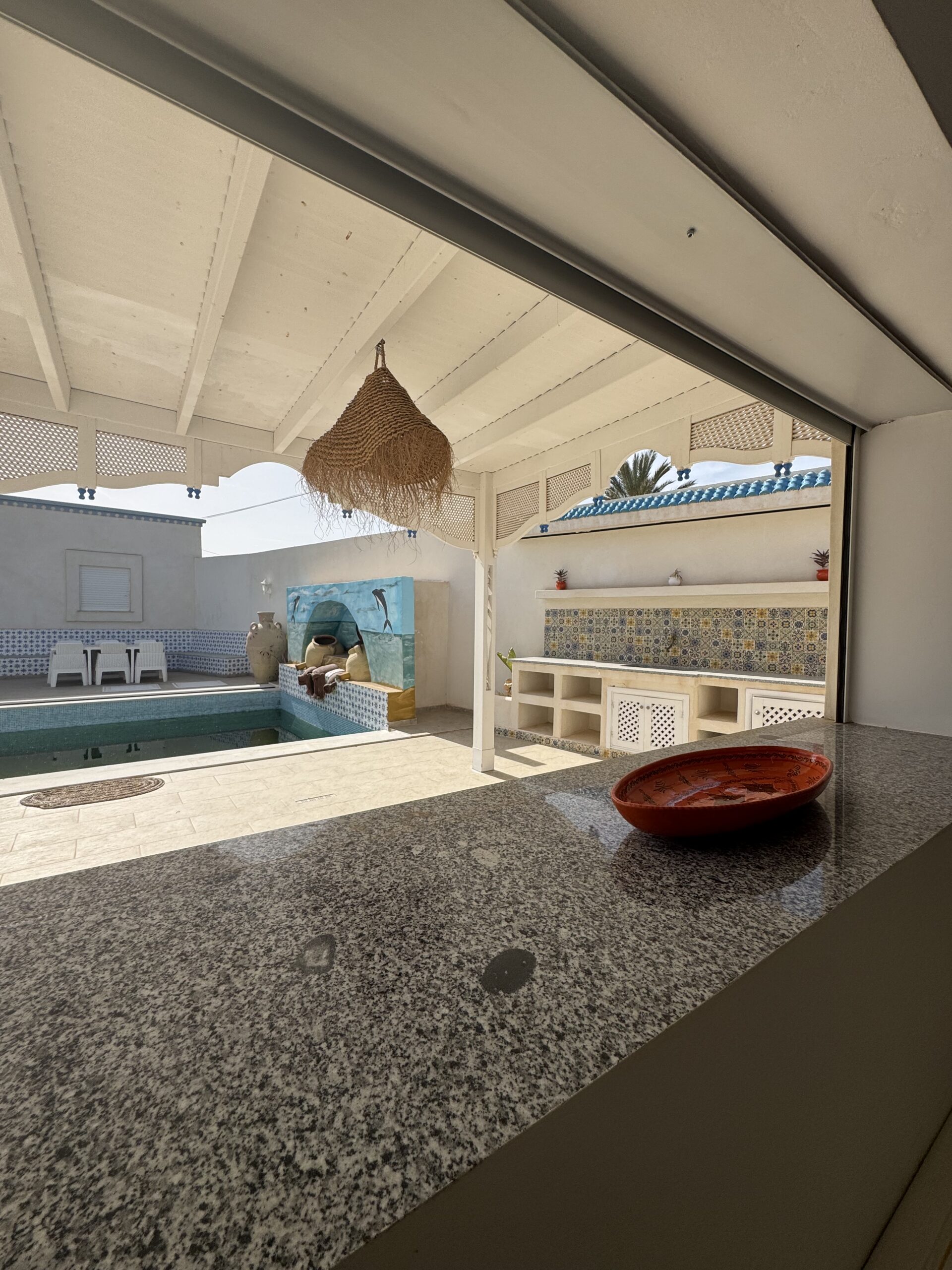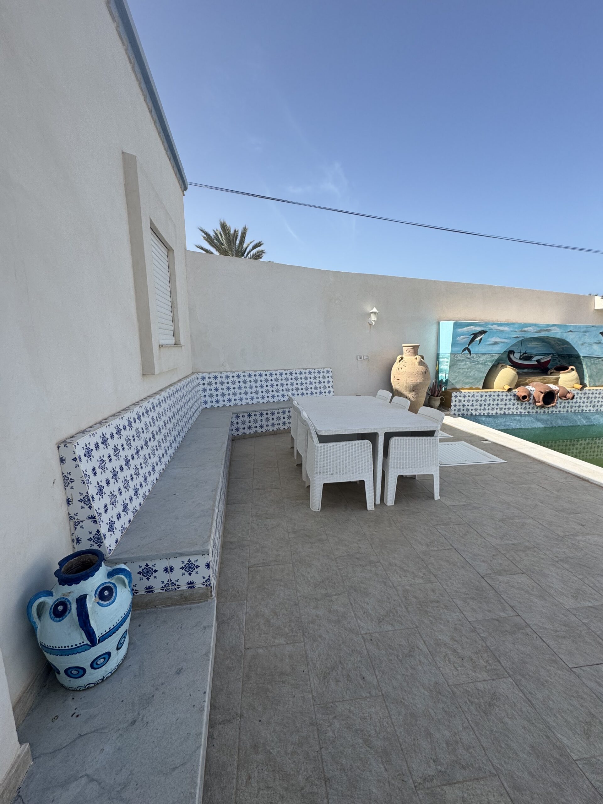 La villa se distingue par sa décoration typiquement tunisienne, alliant charme et authenticité. La cuisine extérieure est parfaite pour des barbecues en plein air, vous permettant de savourer des repas tout en profitant du soleil.