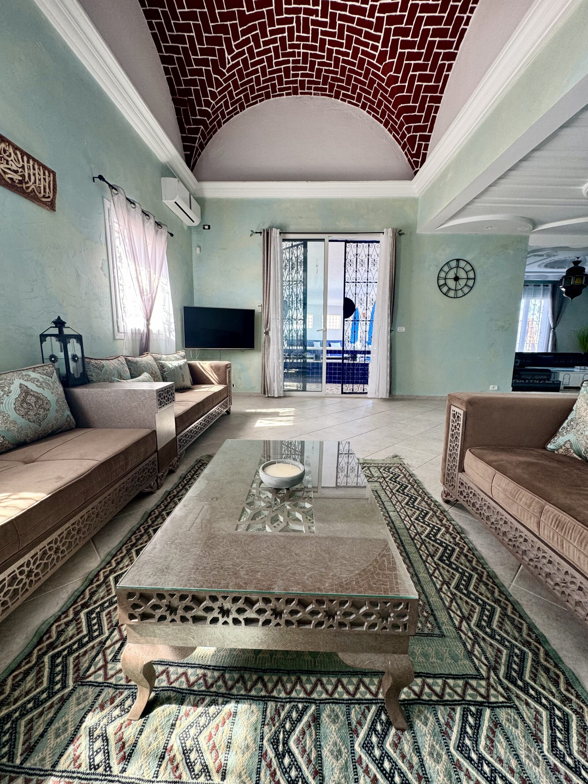 Bienvenue dans cette magnifique demeure familiale sur un terrain de 2400 m2 sans vis à vis, un véritable havre de paix situé dans le secteur paisible de Mahboubine , où chaque coin est imprégné de sérénité. cette villa spacieuse est parfaite pour des vacances en famille ou entre amis, pouvant accueillir confortablement entre 12 personnes max. Ici, vous pourrez créer des souvenirs inoubliables en famille ou entre amis, dans un cadre chaleureux et accueillant.